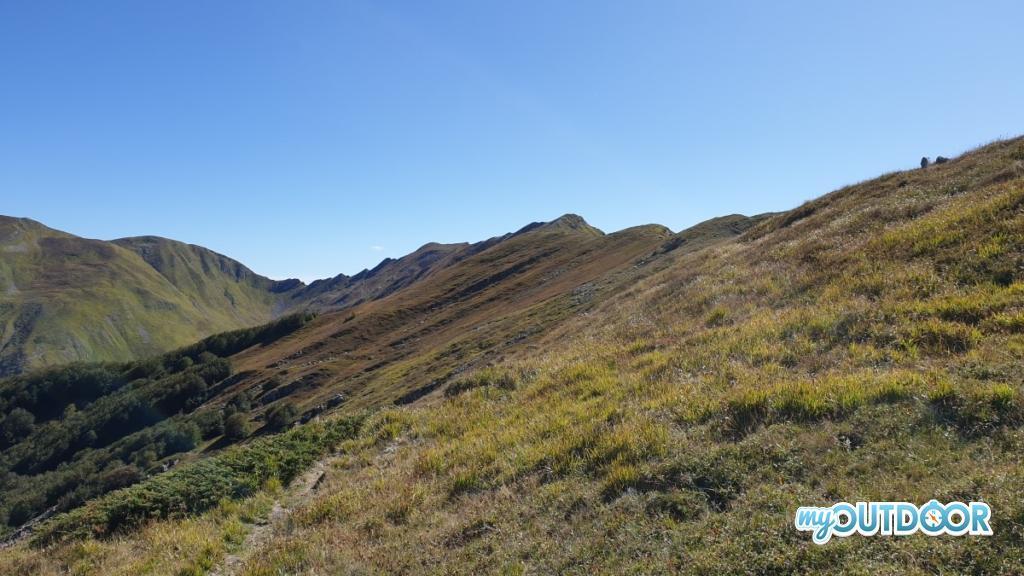Mi concedo giusto il tempo per mangiare un panino, per ripartire alla volta dell’Alpe di Succiso, ben visibile a Sud-Est della mia posizione. Da Punta Buffanaro quindi proseguo in discesa, lungo l’ormai costante crinale, attraverso ulteriori rocce attrezzate, superando il Monte Alto (1.920m) e giungendo al Passo di Pietra Tagliata (1.770m), crocevia tra il sentiero CAI 673 e 671.